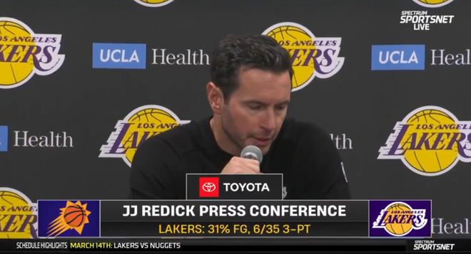 赛后,湖人主教练雷迪克谈到了湖人本场比赛的表现。